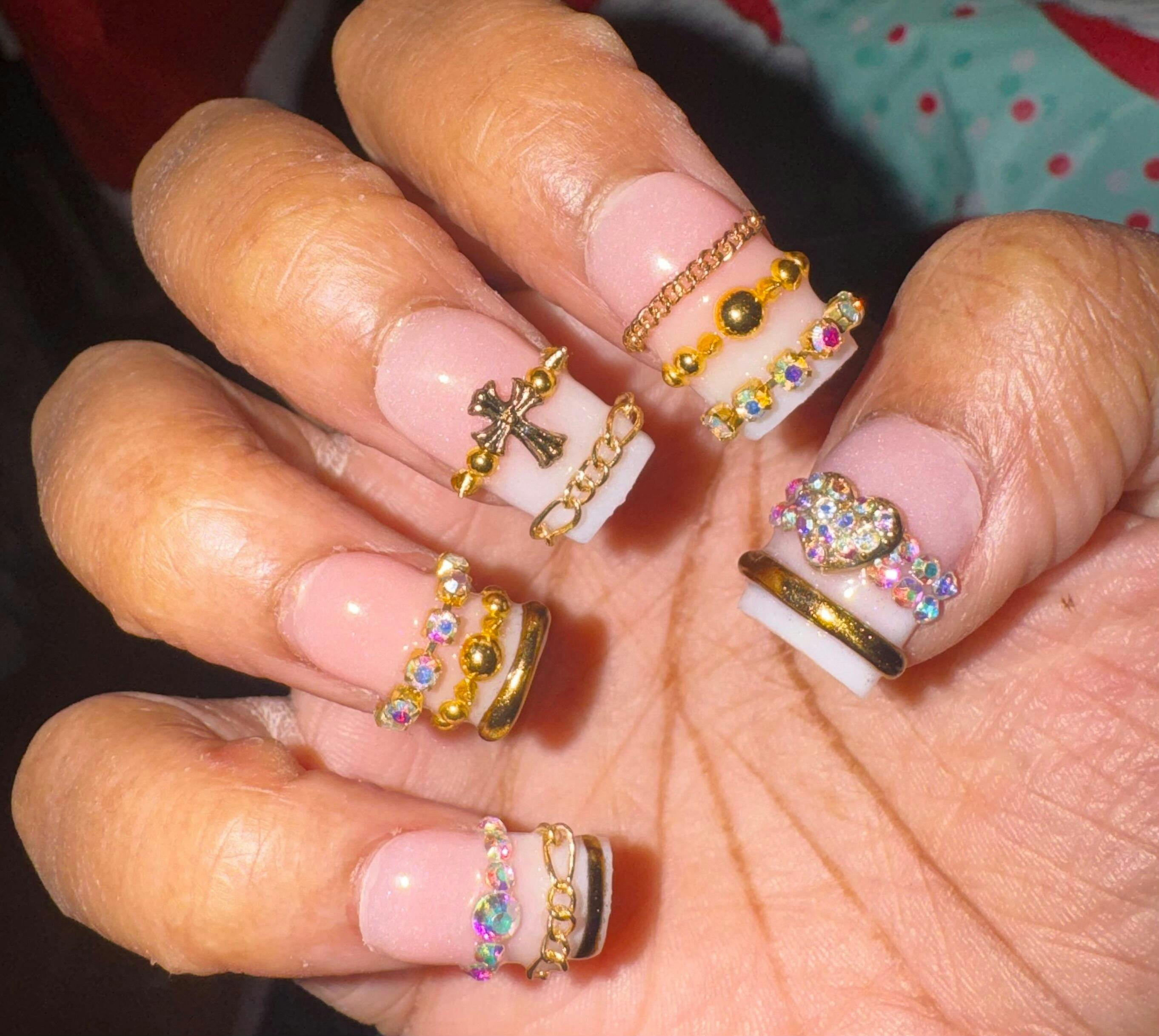 Please note that nail sets may include charms that differ slightly from those shown in the original design photo. While the overall look, style and aesthetic of the set will remain consistent, charms may vary based on availability to ensure timely completion of your order.
