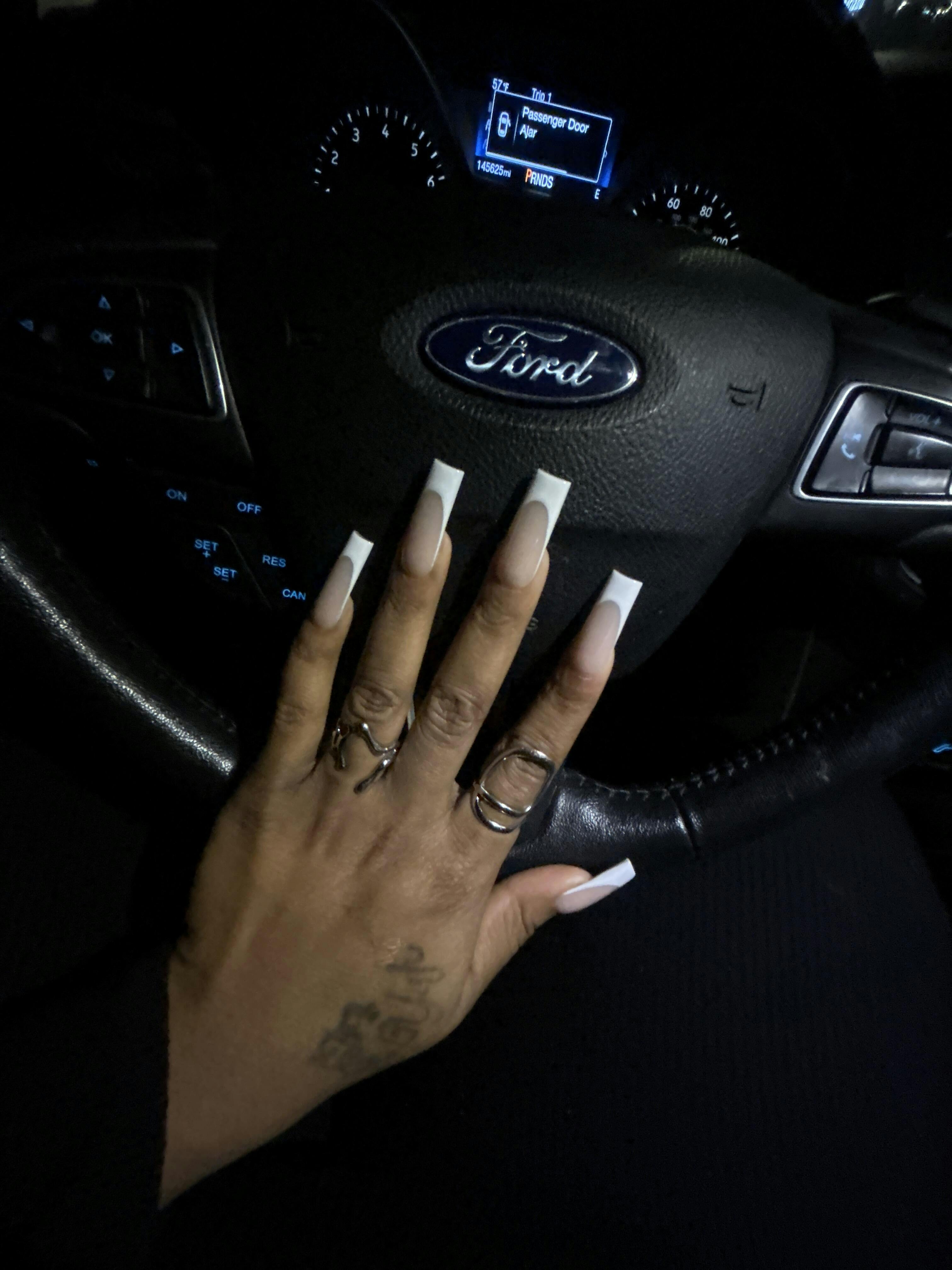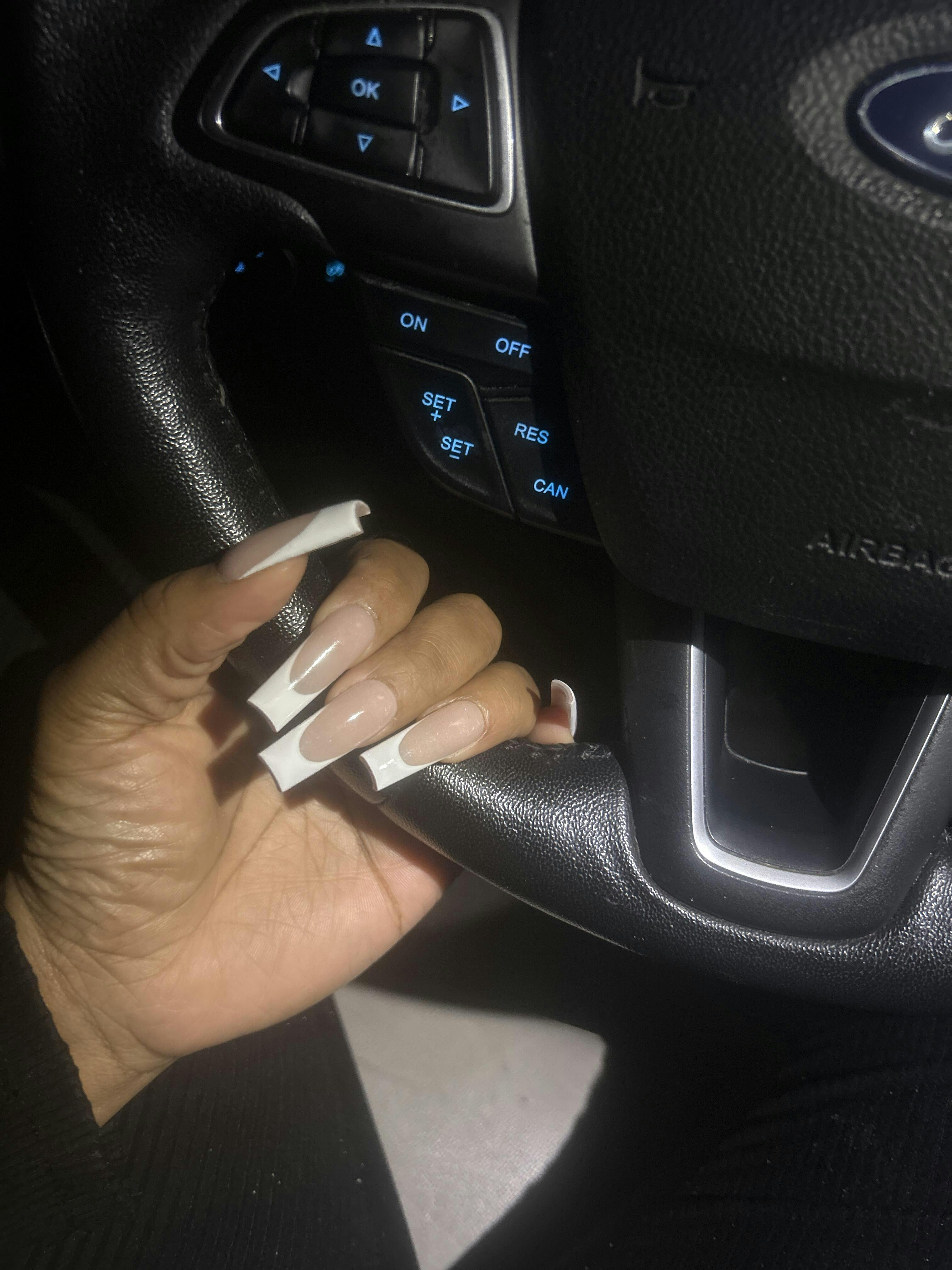 Classy french is a soft pink nude with deep white frend but you have the option to change the colors.