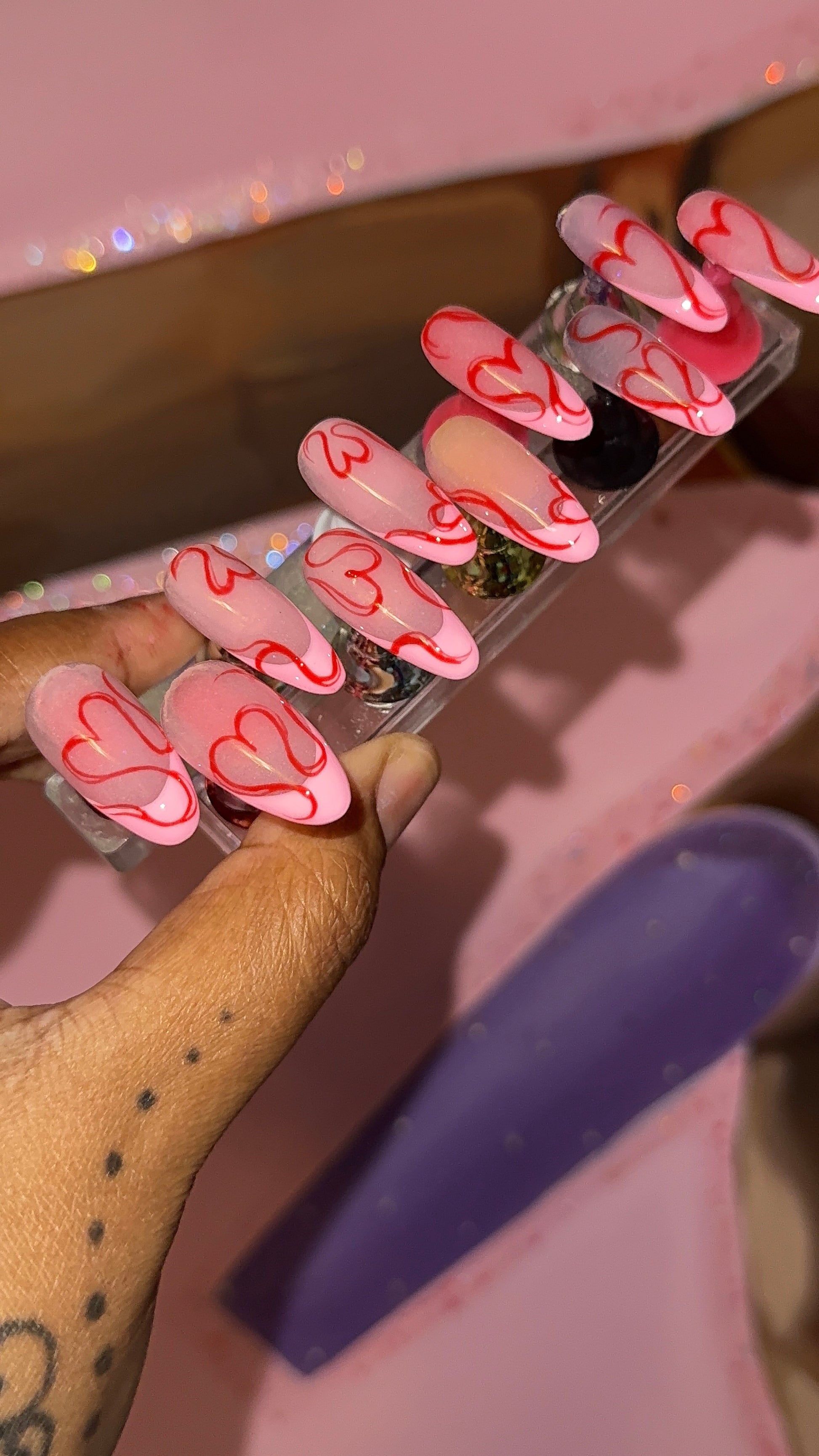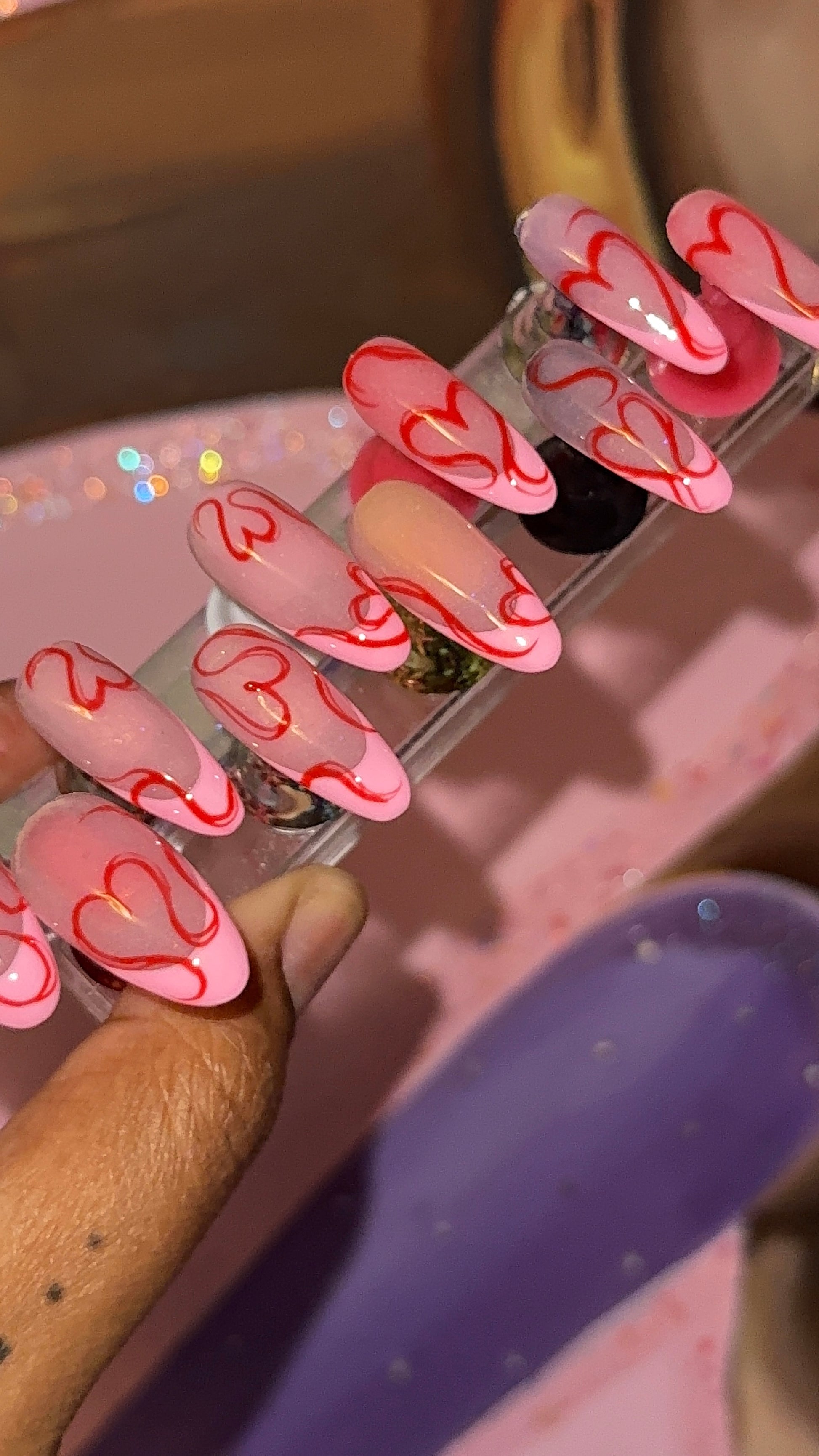 Set in pic; Length; Med, Style; straight, Shape; Almond.