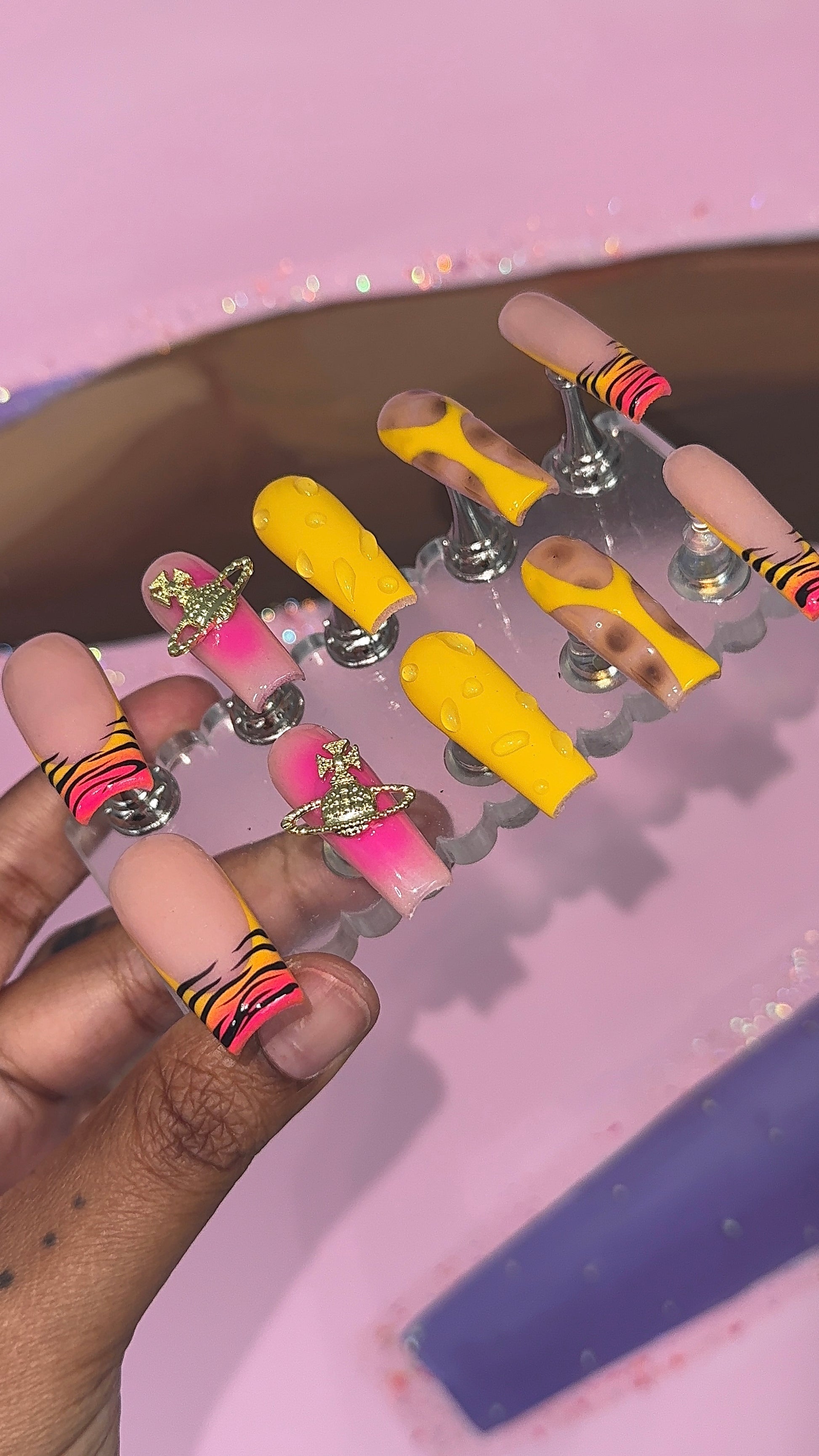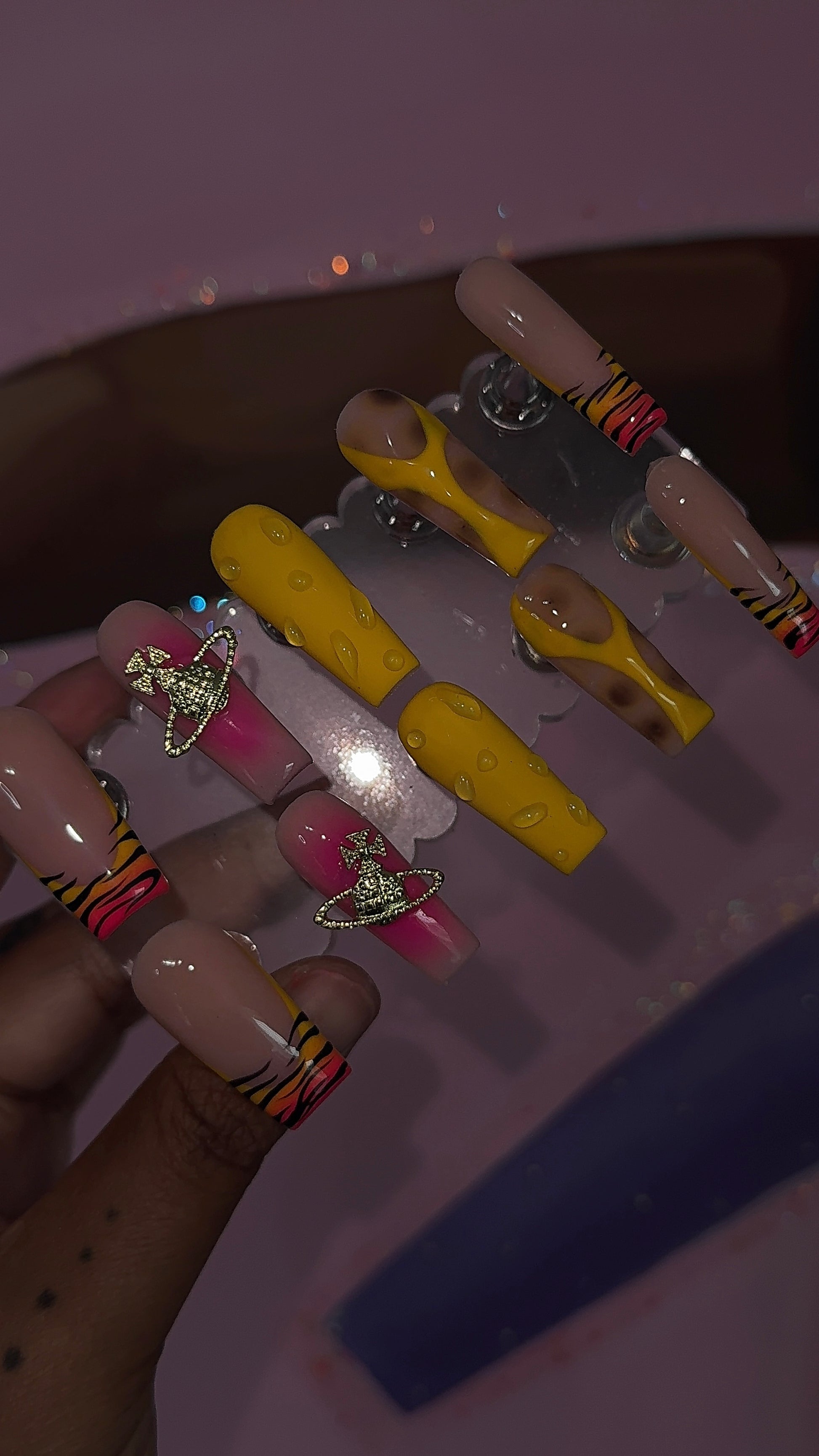 Set in pic; Length; MedLong, Style; straight, Shape; coffin.